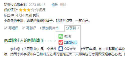 但在豆瓣电影的实际应用中,发现同步分享到豆瓣广播是正常的,而同步到新浪微博却怎么也不成功。