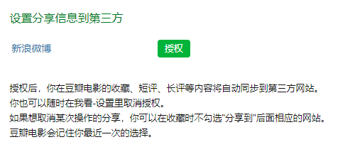 在授权关联后,“分享到”是能勾选新浪微博,但提交后微博那边根本就没有同步分享的信息,回到豆瓣那边再次打开“分享到”页面,此时能看到新浪微博账号是未授权关联状态。